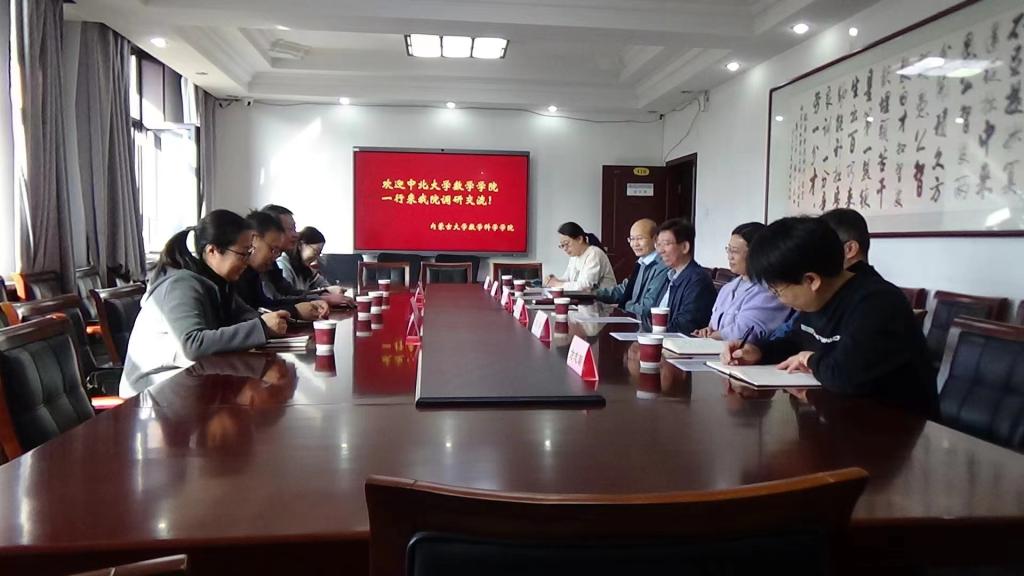 2024年4月1日上午9时,中北大学数学学院党委书记薛亚奎、副院长王鹏、大学数学教学中心主任宋妮、教学科科长张俊燕一行四人来我院调研,我院党委书记胡利春、院长李宏、副院长刘洋、贺飞和基础数学系系主任郝晓玲、信息与计算科学系系主任方志朝参加了相关调研。