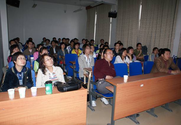 2008年5月29日下午,美国内华达州立大学终身制助理教授阿妹博士在综合楼0507教室作题目为“A time-dependent Poisson random field model for polymorphism within and between two related Biological species”的学术报告。