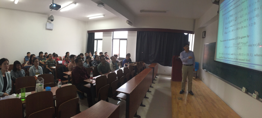 2017年6月6日16:30-18:00在研究生楼310,上海大学李常品教授为永利23411集团官网师生作关于“The Finite Difference Method for Fractional Parabolic Equation with Fractional Laplacian”的学术报告。全院30余师生听取了报告,并就分数阶问题及数值计算方法等进行热烈的讨论。
