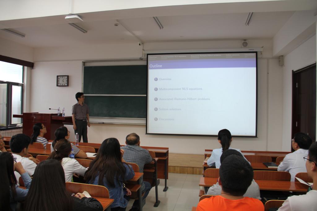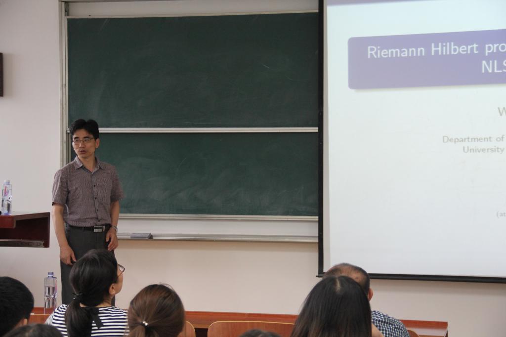 2017年8月28日下午16:00-17:30在研究生楼107室,美国南佛罗里达大学终身教授马文秀为我院师生作题为“Riemann Hilbert problems and soliton solitons of NLS equations”的学术报告,报告内容主要针对目前国内外比较关注的可积系统中的黎曼-希尔伯特问题展开,报告会由副院长李宏教授主持,30余师生听取报告,期间讨论热烈、气氛活跃,此次报告令青年教师及研究生受益匪浅。