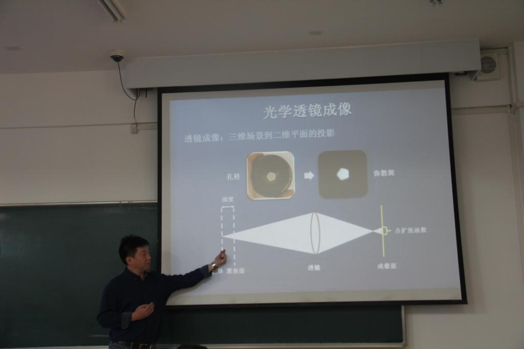 9月28日下午, 北京信息科技大学理学院数学系邱钧教授(兼北京信息科技大学应用数学研究所主任,担任中国体视学会CT理论与应用研究会专业委员会委员),为我院师生做题为“全光场成像技术与三维场景重构”的学术报告。邱钧教授的报告图文并茂、深入浅出,聆听报告的师生受益匪浅。报告中还展开了讨论,气氛热烈活跃。我院30余师生听取报告,报告会由学院副院长李宏教授主持。