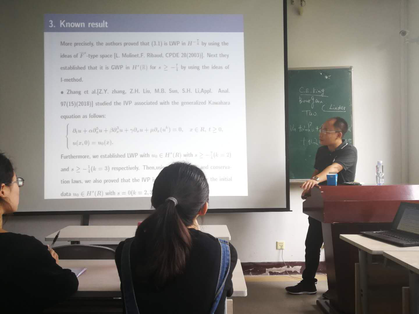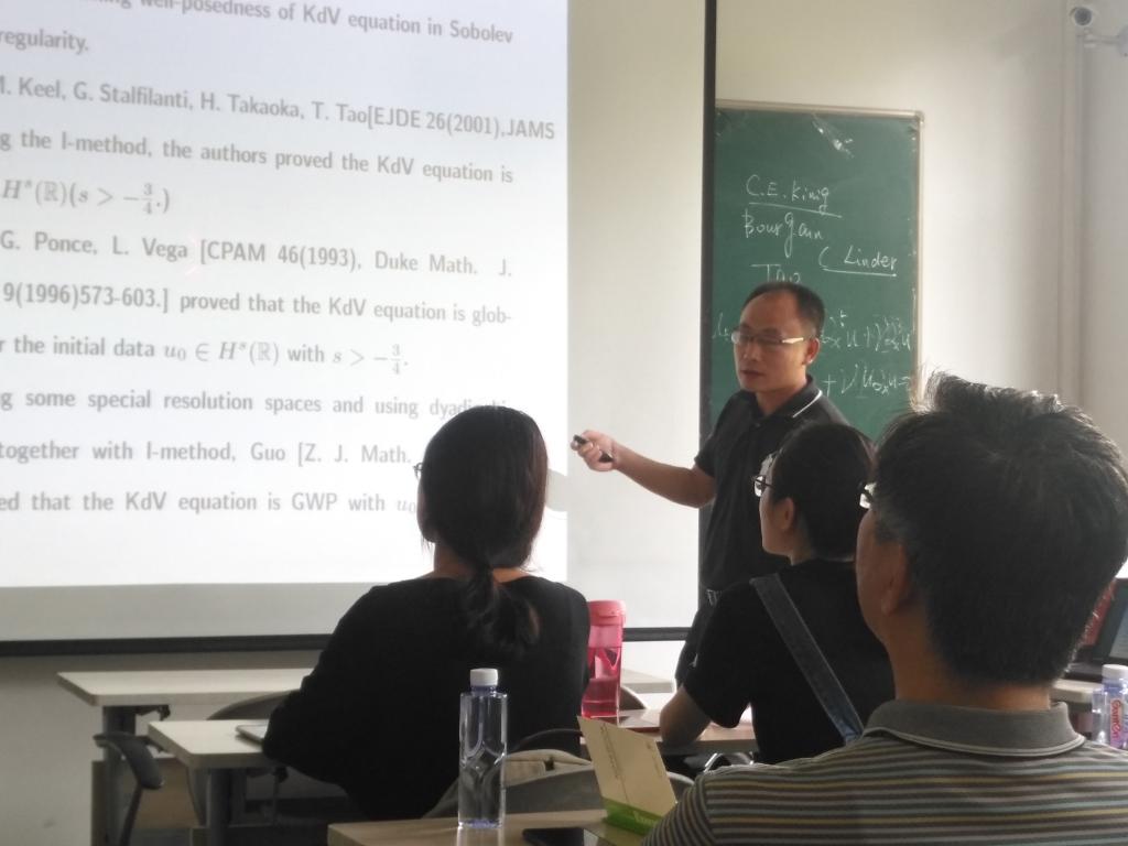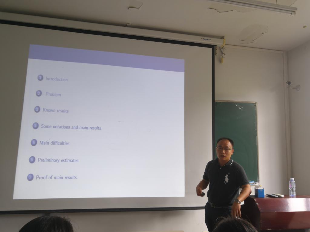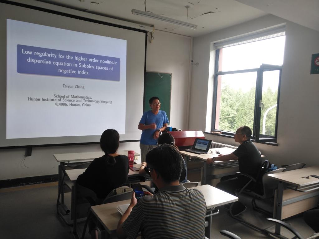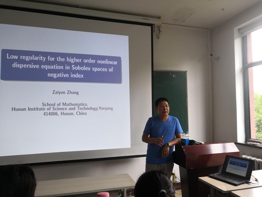 8月5日上午,在明远楼永利23411集团官网306,湖南理工学院数学学院张再云教授为我院师生作题为“Low regularity for the higher order nonlinear dispersive equation in Sobolev spaces of negative index”的学术报告,报告会由副院长刘全生主持,学院20多位师生听取了报告并进行了热烈的讨论。