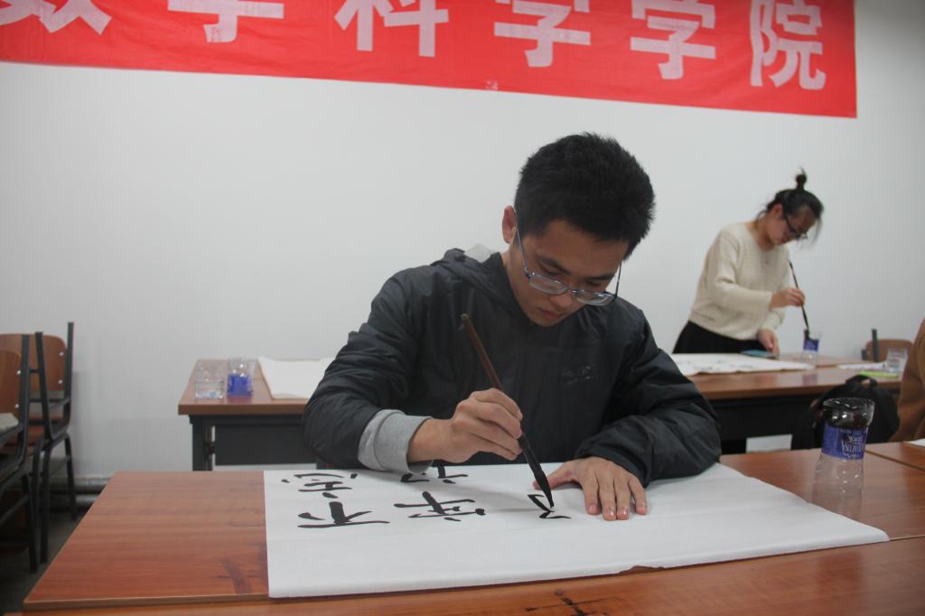 与此同时,软笔书法项目也在如火如荼地进行。参赛选手们聚精会神,胸有成竹,有的挥毫泼墨,飘逸洒脱;有的一笔一划,认真专注;有的气韵生动,一气呵成。每一幅书法作品都展现了同学们对书法的热爱,对书法艺术的追求。