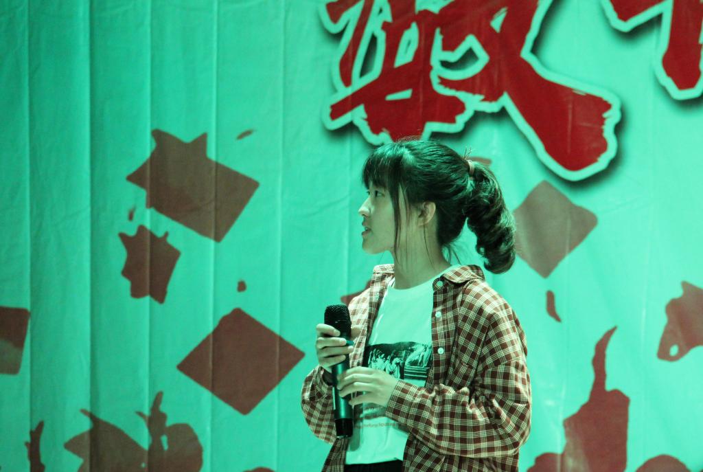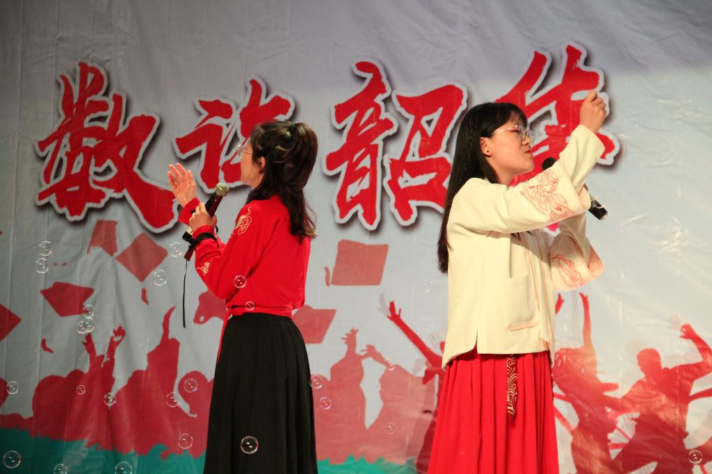 辅导员娜仁其其格老师(左)和杨海波(右)带来歌曲《凉凉》。