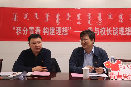 12月26日下午4:00,校党委副书记、校长陈国庆在北校区明远楼410会议室参加了永利23411集团官网2019级数理基础科学(数学基地)团支部“积分青春 构建理想”——校长与我谈理想主题团日活动。学校团委书记阿古拉、班主任乌彩英、辅导员娜仁其其格及该支部31名同学参加活动。