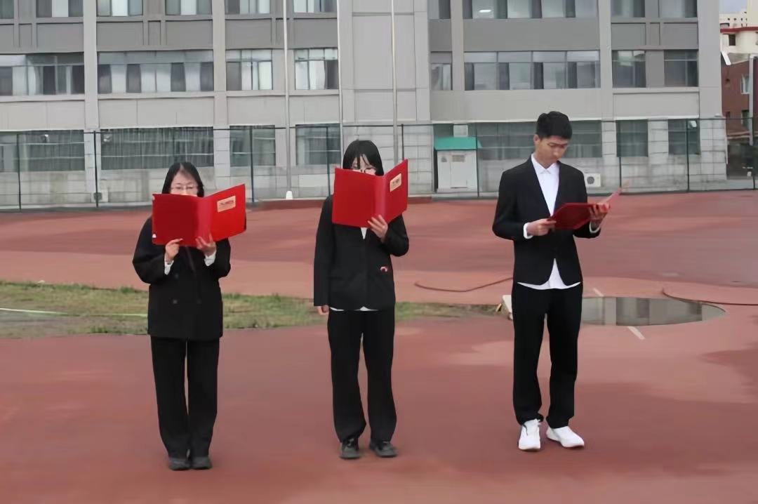 升国旗仪式结束后,我院学生代表张婷婷、张福荣、刘语乐同学带来国旗下的朗诵。国家安全这个词汇,仿佛是一座巍峨的山峰,屹立在我们每个中国人的心中。它不仅是国家繁荣稳定的基石,更是民族尊严和自信的体现。它并非只是一句空洞的口号,而是我们每一个华夏儿女肩负的神圣使命与责任。