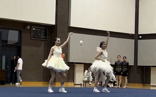 孙佳怡和刘思琪同学参加了此比赛。舞台光影漫过纯白裙摆,两位舞者如双生蝶翼轻振。她们足尖点地旋出月光般的弧,裙摆扬起时漫成流动的云,手臂交叠间溢出柔滑的韵律。每一次呼吸都合着节拍,于轻盈中藏着力量的咬合,像两朵并蒂花在旋律中同步绽放。