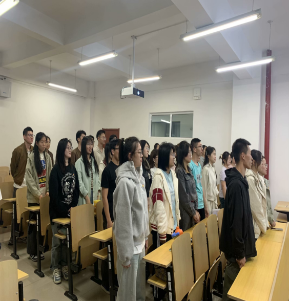 辅导员宋鹏程老师对新发展的团员们表示祝贺,他强调入团是荣誉与责任并重的起点,勉励新发展团员们坚定理想信念,立足新时代要求锤炼品格、提升能力,以积极行动践行青春担当。同时,团组织将始终为青年发展提供支持与平台,号召全体团员凝心聚力,在服务集体、奉献社会中展现青春价值,共同为新时代建设贡献青年力量。