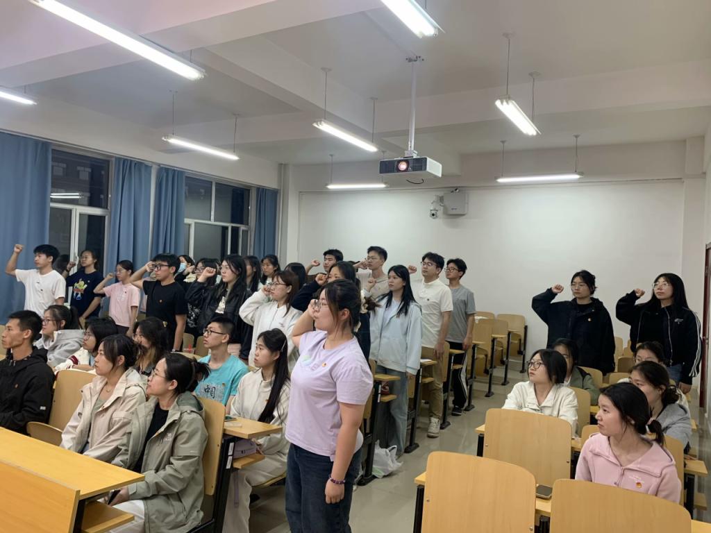 首先,入团仪式在庄严的国歌声中拉开序幕。其次,由学院团委宣传委员刘家冉同学宣读入团人员名单,2023、2024级本科生各班团支书为新发展团员佩戴团徽、发放团员证。由2022级本科生团员代表王斐同学领誓,全体新入团成员面向团旗庄严宣誓。他们铿锵有力的誓言,向共青团传递着炽热的理想信念与坚定的使命担当。新发展团员代表杭岸祺同学分享入团感言。从他的话语中,我们感受到了新团员积极向上的精神风貌与对未来的坚定信念。